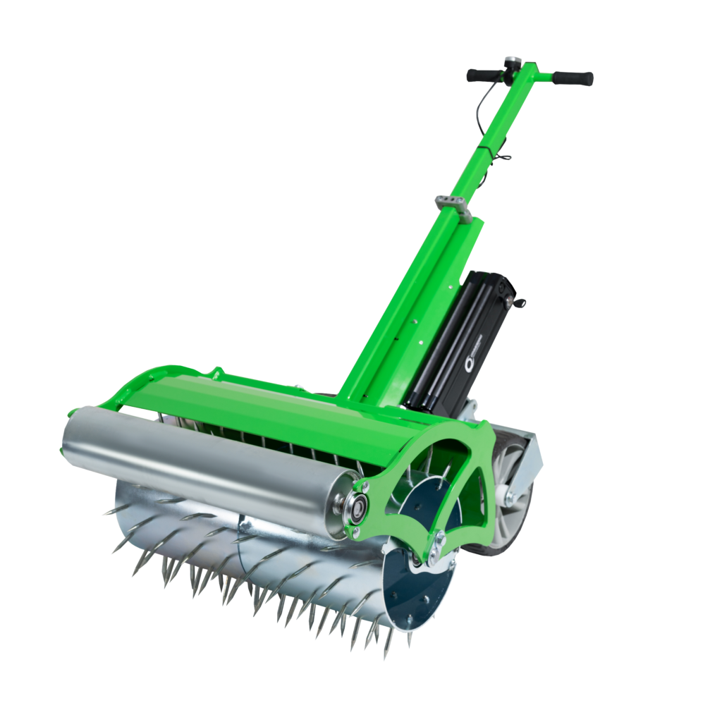 Die “SPIKER – Aerifizierwalze” mit Akkuantrieb ist die ideale Lösung für eine umweltfreundliche und effiziente Rasenpflege. Der leistungsstarke Akku ermöglicht eine lange Betriebsdauer ohne Kabel und minimiert schädliche Emissionen sowie Lärm. Die Kombination aus Aerifizierwalze und Akkuantrieb gewährleistet eine gründliche Belüftung des Bodens, was zu einem gesünderen Rasen führt. Die intelligente Transportrolle erfüllt dabei eine doppelte Funktion: Sie bewahrt die Stacheln vor Beschädigungen während des Transports und dient während der Anwendung als zusätzliches Gewicht, um die Stacheln tiefer in den Boden zu bringen. Dadurch erhält der Rasen eine verbesserte Belüftung und Durchlüftung. Die innovative Akku-Walze ist drei verschiedenen Walzbreiten erhältlich.