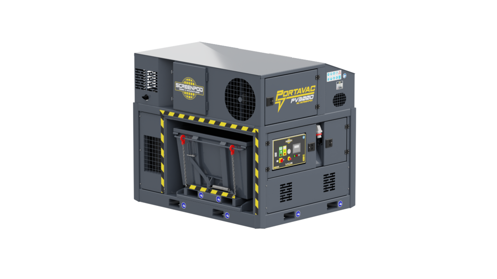 Der Screenpod PV300D ist ein kompakter und dennoch leistungsstarker, eigenständiger Industriesauger mit einer großen Auswahl an Anbaugeräten, der vollständig mobil ist und eine Vielzahl unterschiedlicher Materialien in Größen von Feinstaub bis hin zu Großschutt sowohl in Innen- als auch in Außenbereichen aufnehmen kann. Er verfügt über einen eigenen integrierten Auffangbehälter mit hoher Kapazität, der mit Hilfe eines Gabelstaplers leicht entleert werden kann.