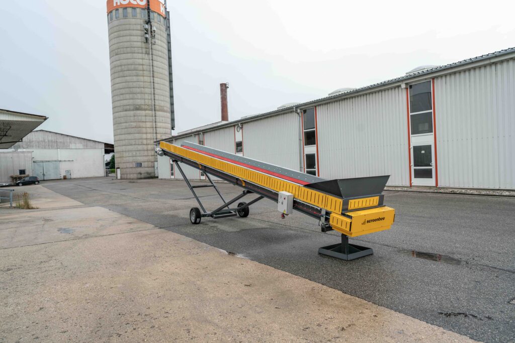 Förderband für den Transport von verschiedenen Materialtypen u.a. im Bereich Hoch- und Tiefbau geeignet. Abbruchmaterialien, über Nassmörtel bis hin zu Erde und dergleichen.