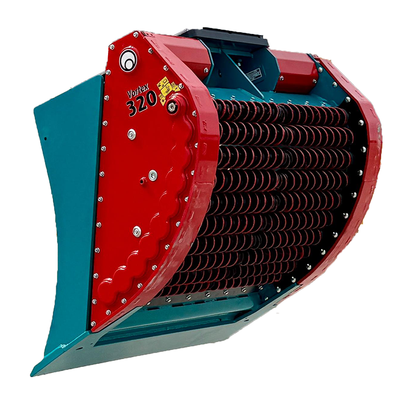Einsatz in neuen Dimensionen mit dem hydraulisch angetriebenen HD-Sieblöffel Vortex 320 für Baggerklassen von 17 – 24 t.