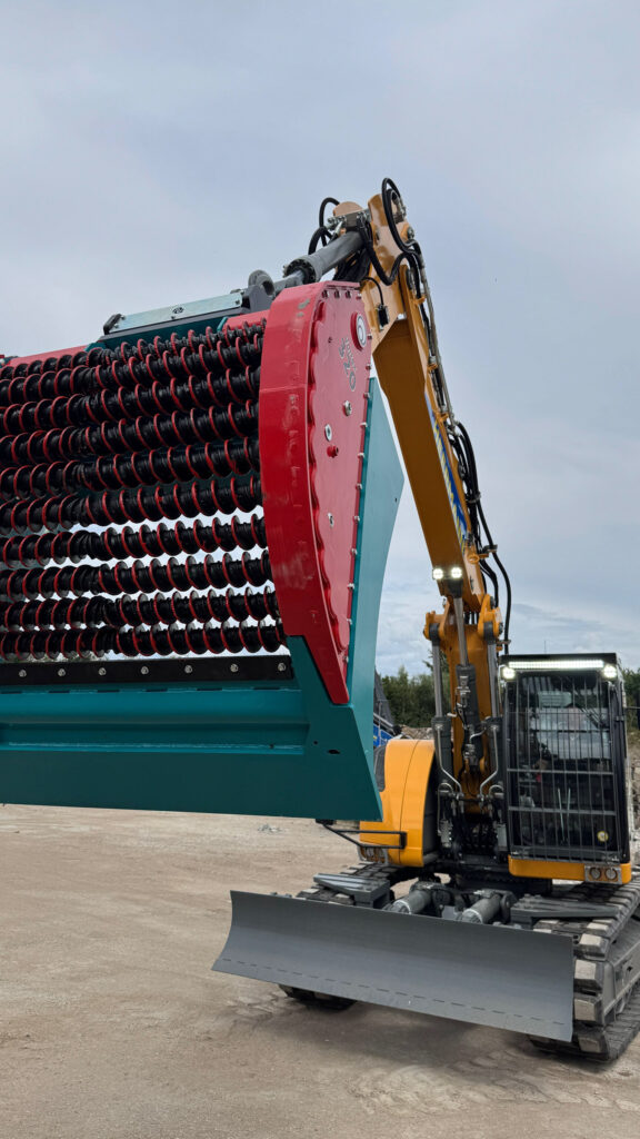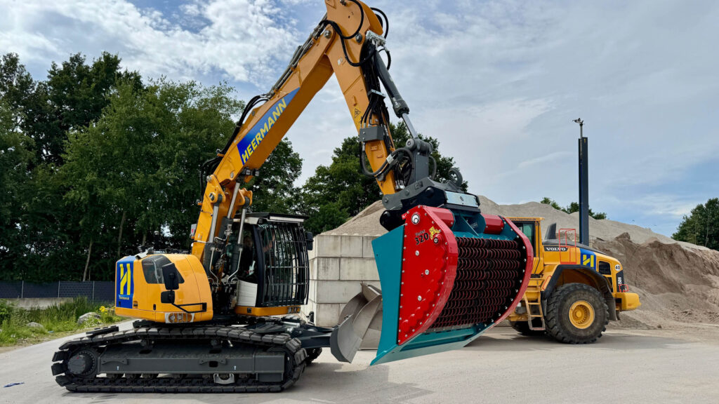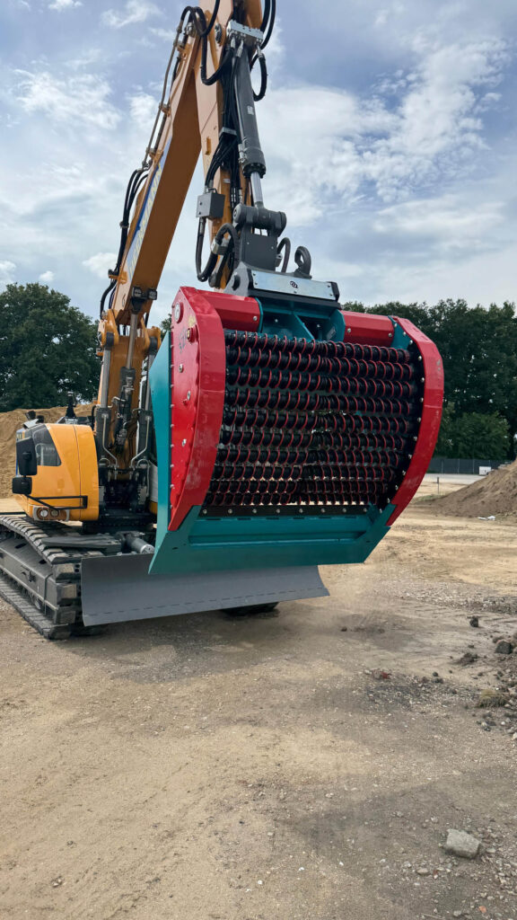 Einsatz in neuen Dimensionen mit dem hydraulisch angetriebenen HD-Sieblöffel Vortex 330 für Baggerklassen bis zu 38 t.