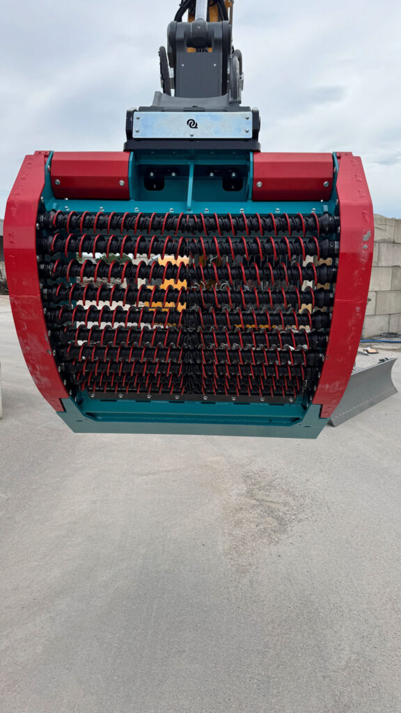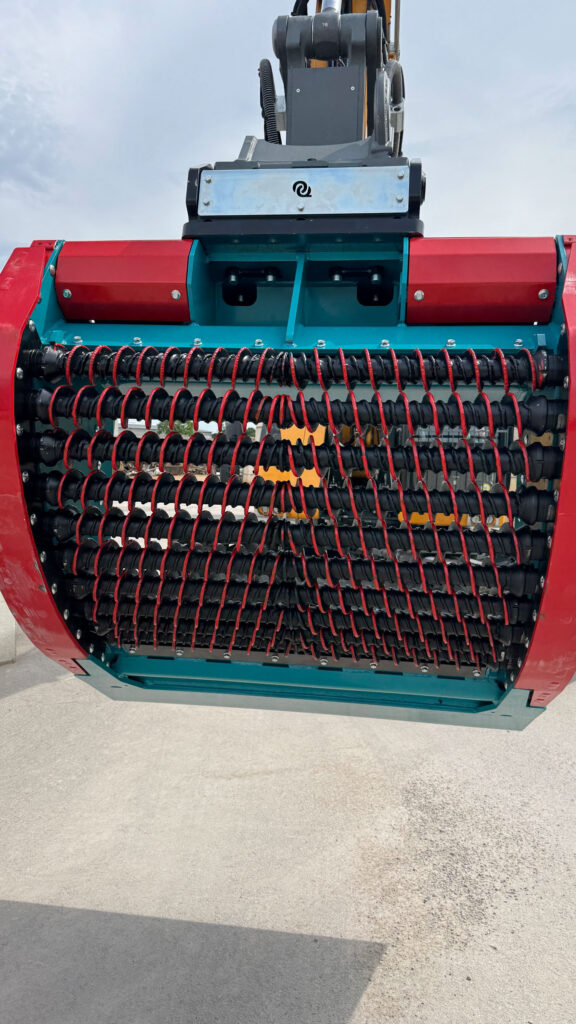Der Baggerlöffel verfügt über 12 aktiv angetriebene Siebwellen, die als rotierende Schneckenwellen ausgeführt sind.