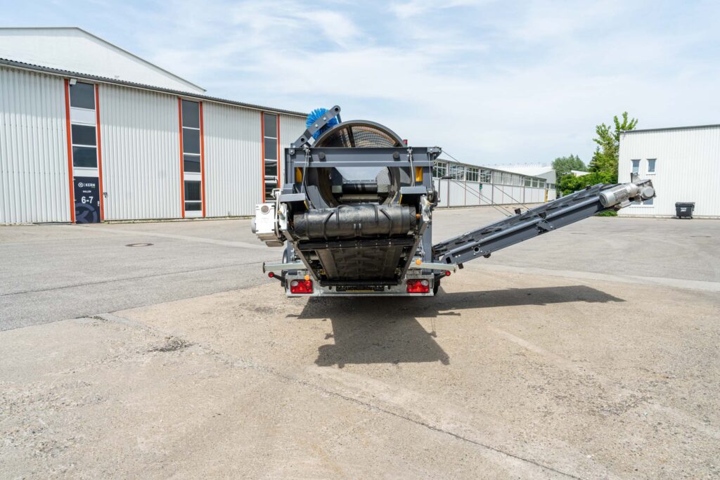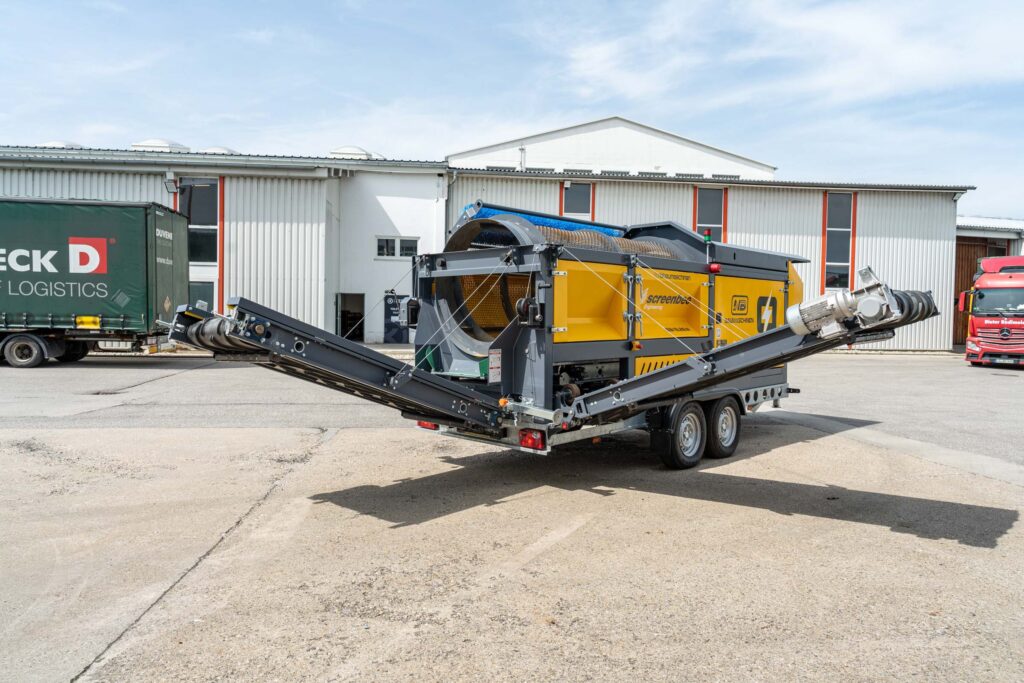 Mobile Trommelsiebanlage auf Anhängerfahrwerk.